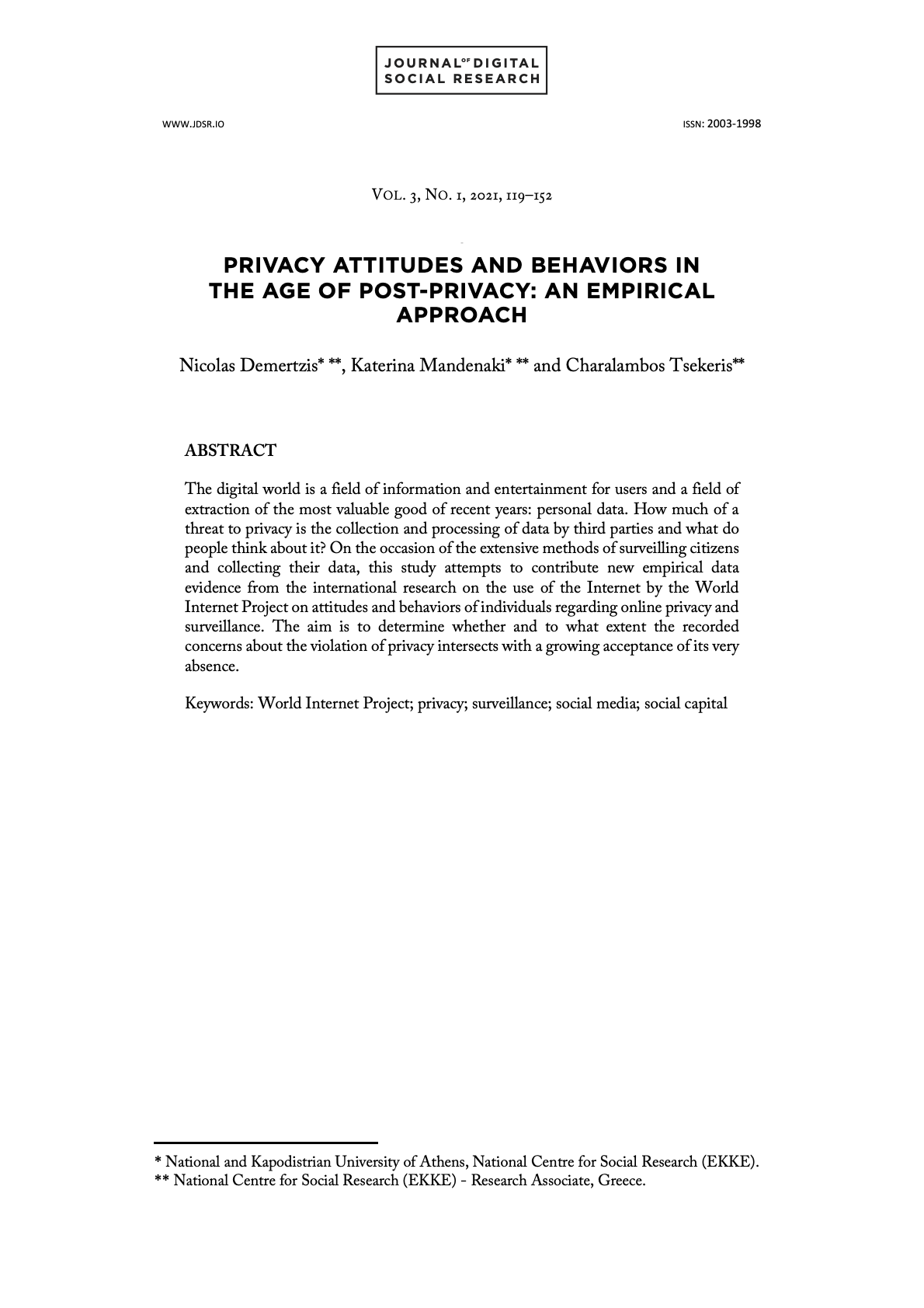 24. Demertzis, N. & Tsekeris, C., 2018, ‘‘Multifaceted European Public Sphere – Socio?Cultural Dynamics’’. In B. Cammaerts, N. Anstead & R. Stupart, Media@LSE Working Paper Series. Media and Communications, Media@LSE, London School of Economics and Political Science.